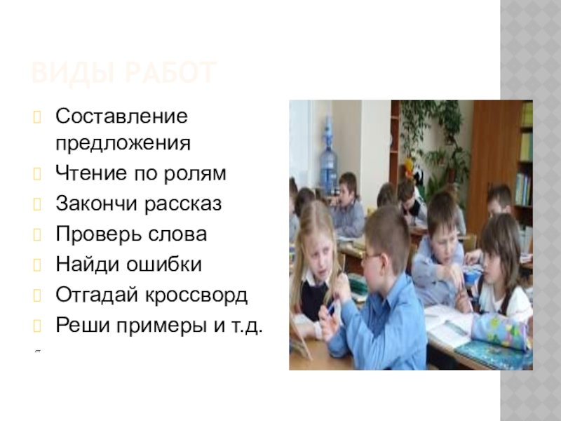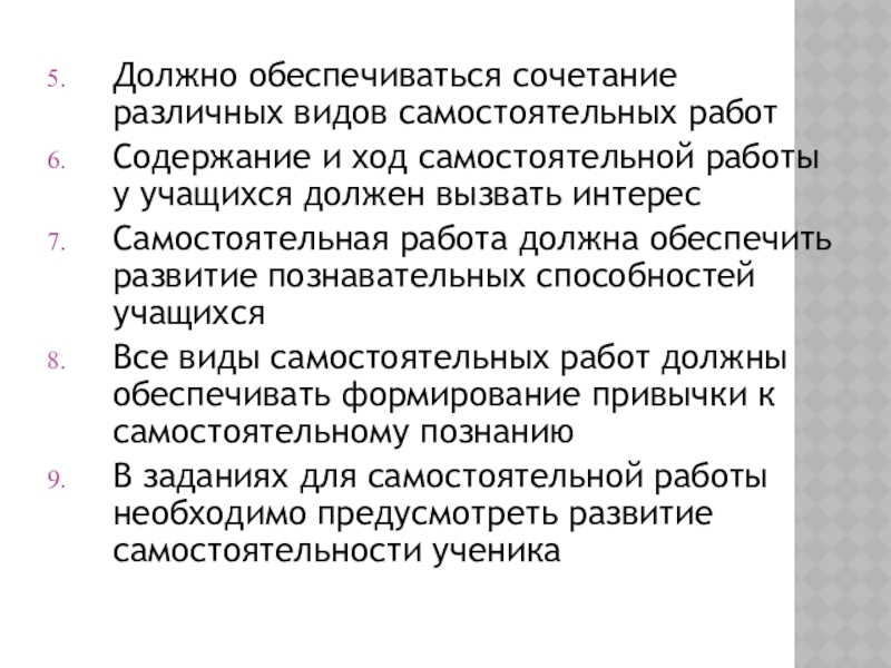 Слайд 7Должно обеспечиваться сочетание различных видов самостоятельных работ
