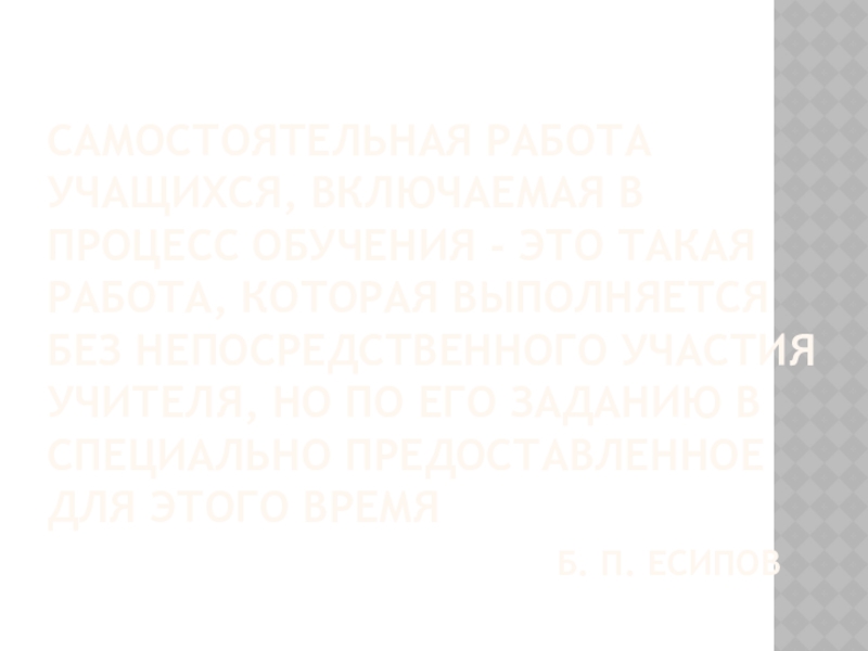 Слайд 2САМОСТОЯТЕЛЬНАЯ РАБОТА УЧАЩИХСЯ, ВКЛЮЧАЕМАЯ В ПРОЦЕСС ОБУЧЕНИЯ - ЭТО ТАКАЯ РАБОТА,