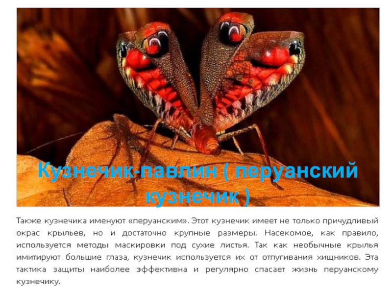 Слайд 6Кузнечик-павлин ( перуанский кузнечик )
