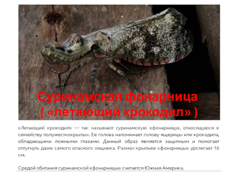 Слайд 10Суринамская фонарница ( «летающий крокодил» )