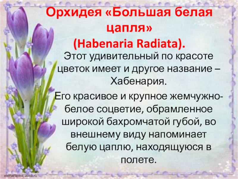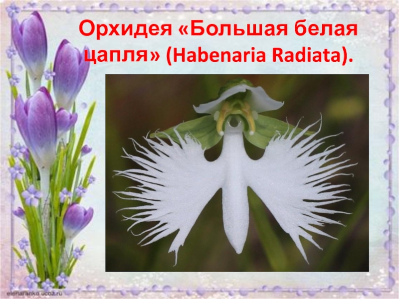 Слайд 48Орхидея «Большая белая цапля» (Habenaria Radiata).
