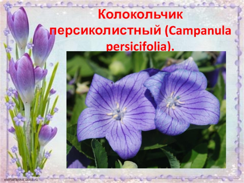 Слайд 35Колокольчик персиколистный (Campanula persicifolia).