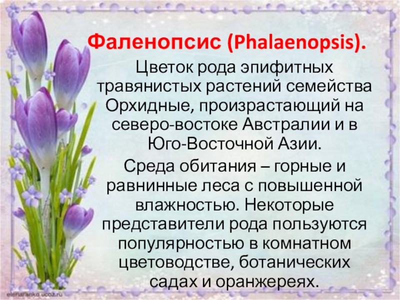 Цветок рода эпифитных травянистых растений семейства Орхидные, произрастающий на северо-востоке