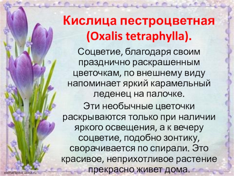 Слайд 28Кислица пестроцветная (Oxalis tetraphylla).
