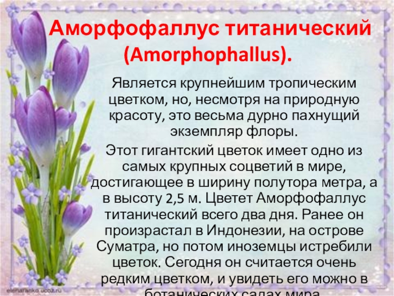 Слайд 7 Аморфофаллус титанический (Amorphophallus).