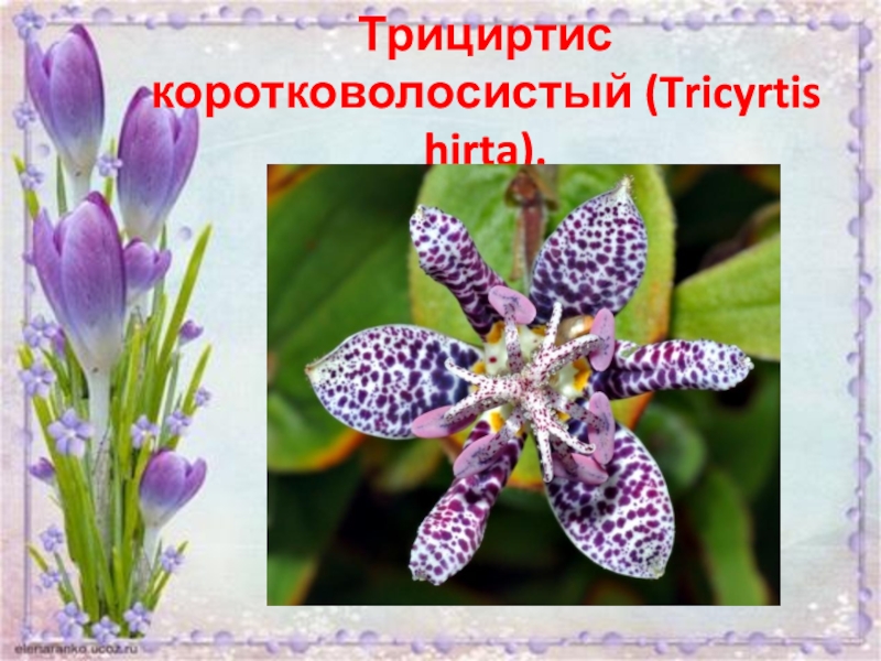 Слайд 3Трициртис коротковолосистый (Tricyrtis hirta).