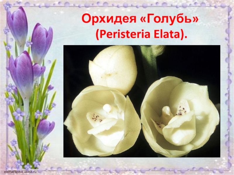 напоминающая голубя, притаившегося в раскрытых лепестках соцветья. Цветок очень капризный и требует особого ухода: высокой температуры и влажности.
