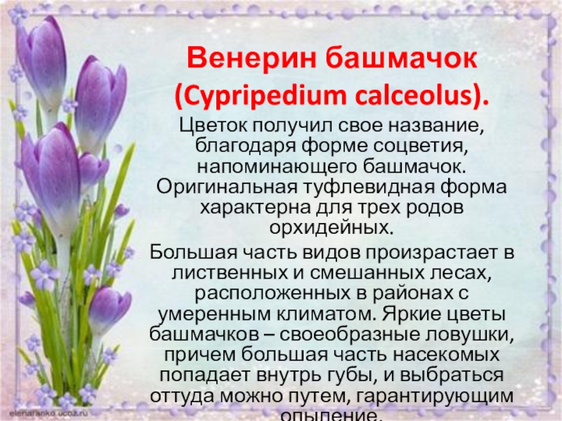 башмачок. Оригинальная туфлевидная форма характерна для трех родов орхидейных.