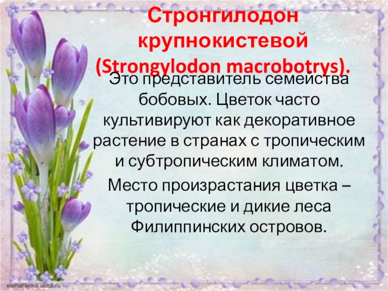 Слайд 49Стронгилодон крупнокистевой (Strongylodon macrobotrys).