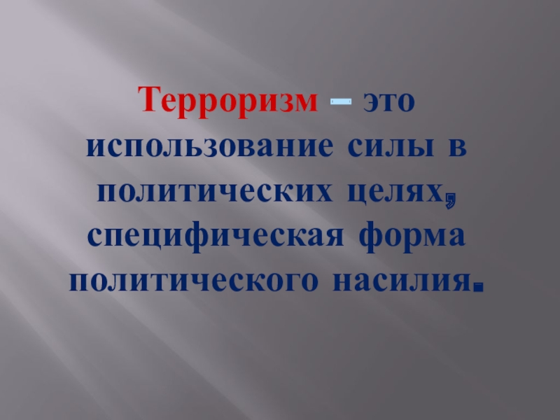 Терроризм – это использование силы в политических целях, специфическая форма политического насилия.
