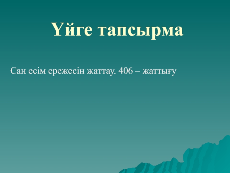 Үйге тапсырмаСан есім ережесін жаттау. 406 – жаттығу