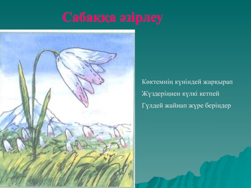 Көктемнің күніндей жарқырапЖүздеріңнен күлкі кетпей Гүлдей жайнап жүре беріңдерСабаққа әзірлеу