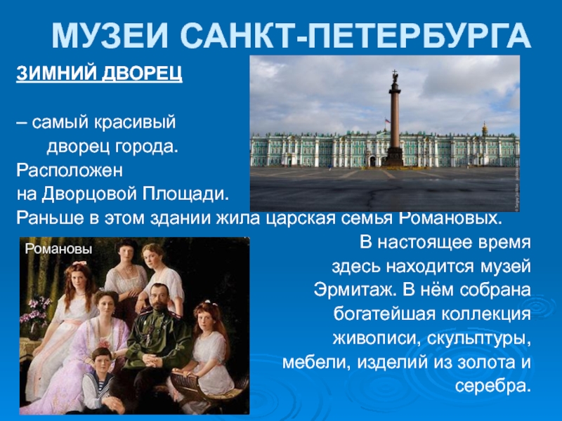 Дворцовый мост – разводной чугунный мост через реку Неву. Соединяет центральную часть города и Васильевский остров. Назван в честь Зимнего Дворца Русских императоров.