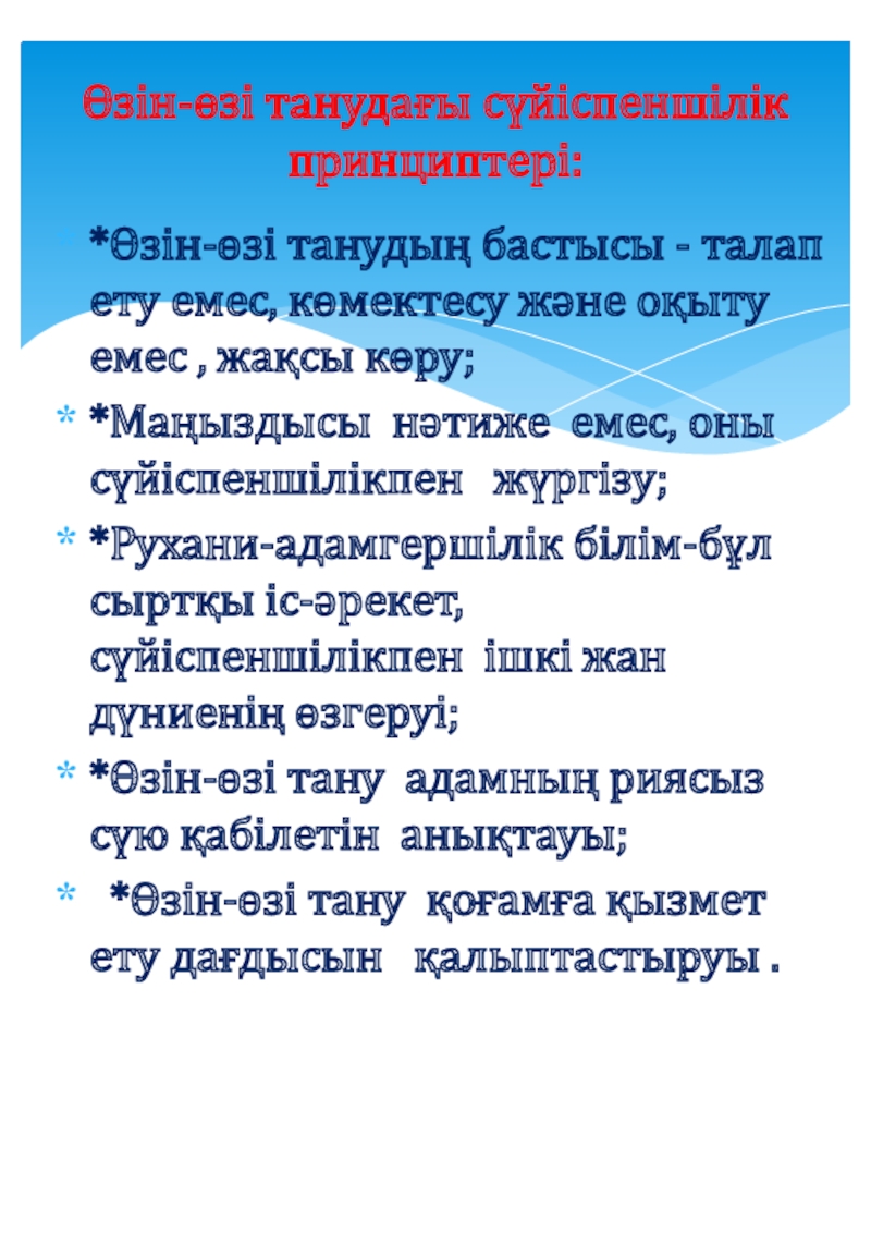 Өзін-өзі танудағы сүйіспеншілік принциптері: