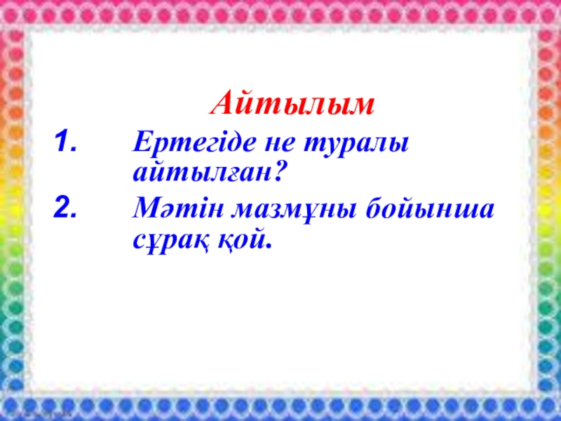 АйтылымЕртегіде не туралы айтылған?Мәтін мазмұны бойынша сұрақ қой.