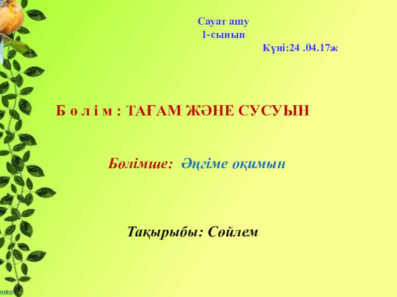 Б ө л і м : ТАҒАМ ЖӘНЕ СУСУЫН