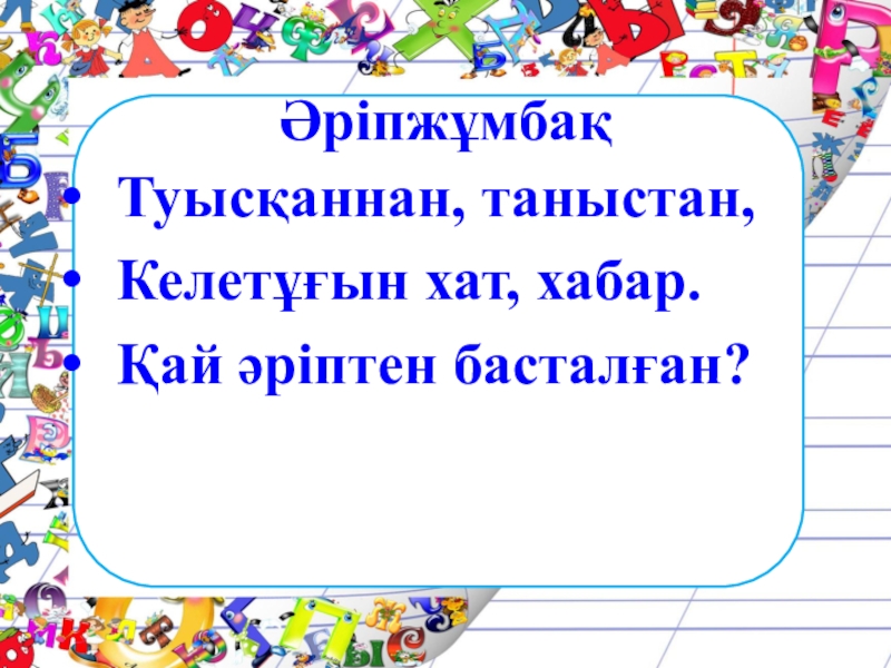 Әріпжұмбақ Туысқаннан, таныстан, Келетұғын хат, хабар. Қай әріптен басталған?