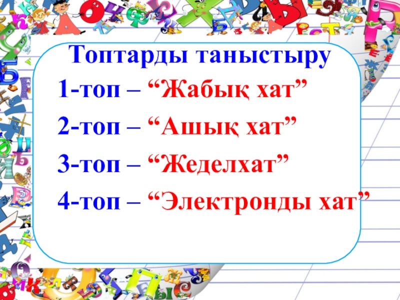 Топтарды таныстыру   1-топ – “Жабық хат”   2-топ – “Ашық хат”