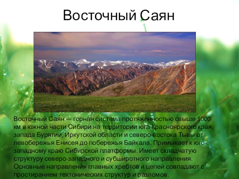 Восто́чный Сая́н — горная система протяженностью свыше 1000 км в