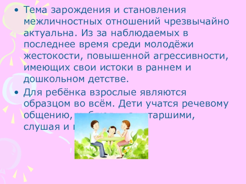 Слайд 5Тема зарождения и становления межличностных отношений чрезвычайно актуальна. Из за наблюдаемых