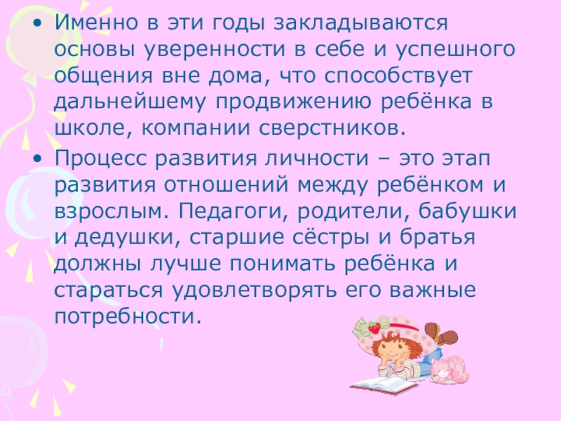 Слайд 9Именно в эти годы закладываются основы уверенности в себе и успешного