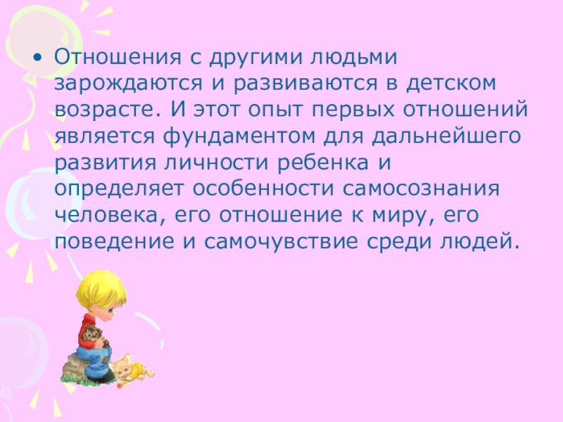Отношения с другими людьми зарождаются и развиваются в детском возрасте. И