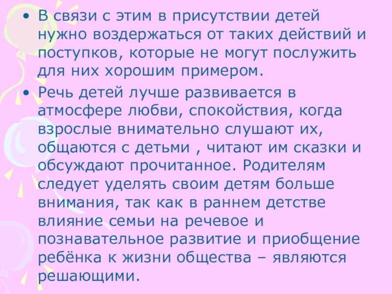 Слайд 8В связи с этим в присутствии детей нужно воздержаться от таких