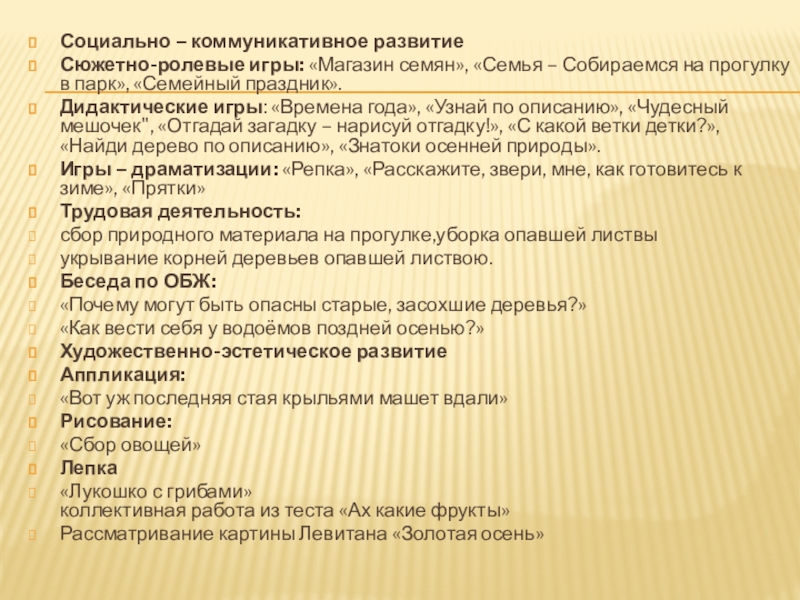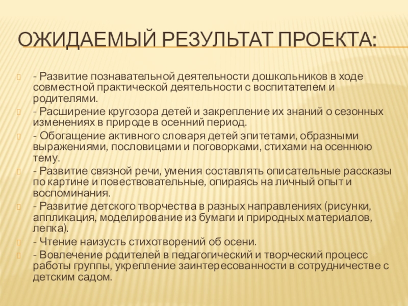 - Расширение кругозора детей и закрепление их знаний о сезонных изменениях в природе в осенний период.