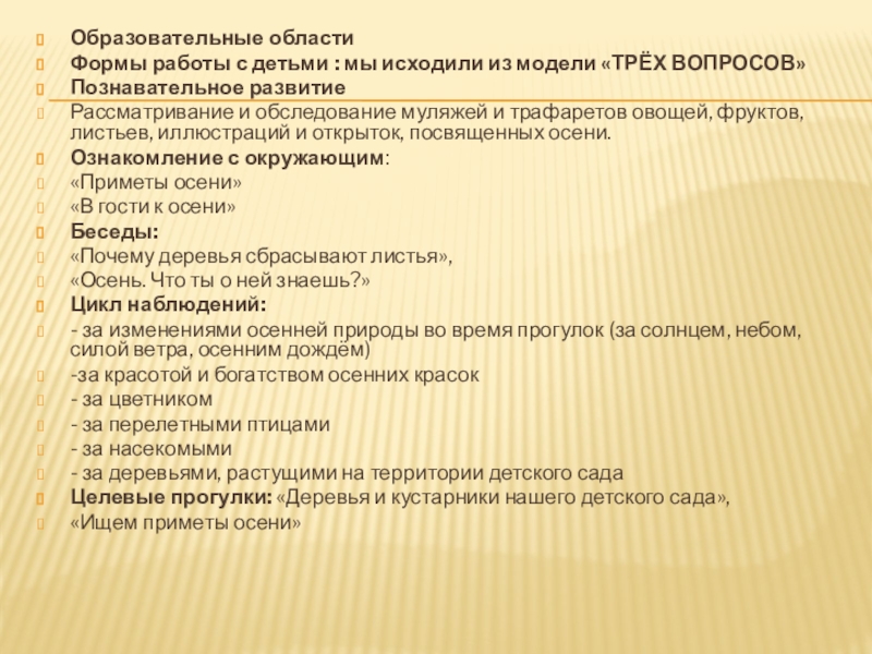 Формы работы с детьми : мы исходили из модели «ТРЁХ