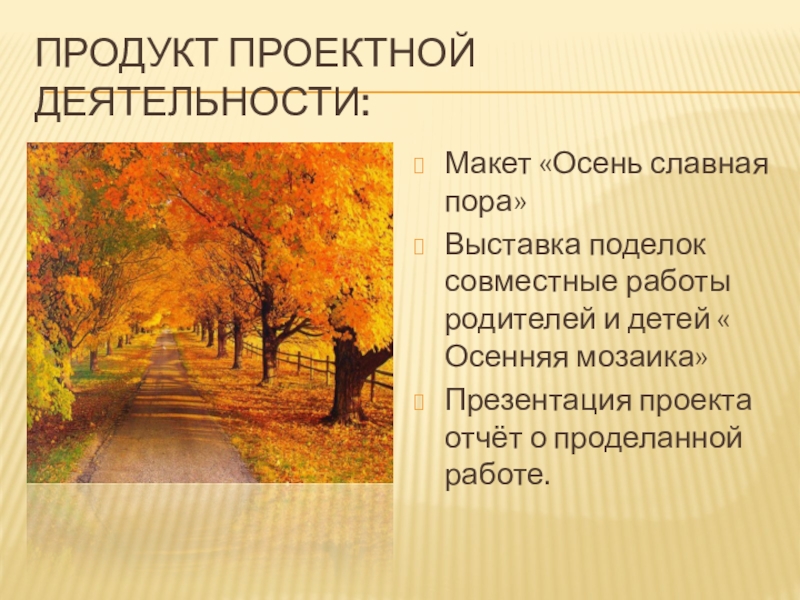 Итоговым мероприятием проекта Был проведён праздник осени.