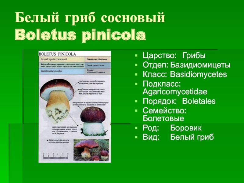 Белый гриб сосновый Boletus pinicolaЦарство:	ГрибыОтдел:	БазидиомицетыКласс:	BasidiomycetesПодкласс:	AgaricomycetidaeПорядок:	BoletalesСемейство:	БолетовыеРод:	БоровикВид:	Белый гриб