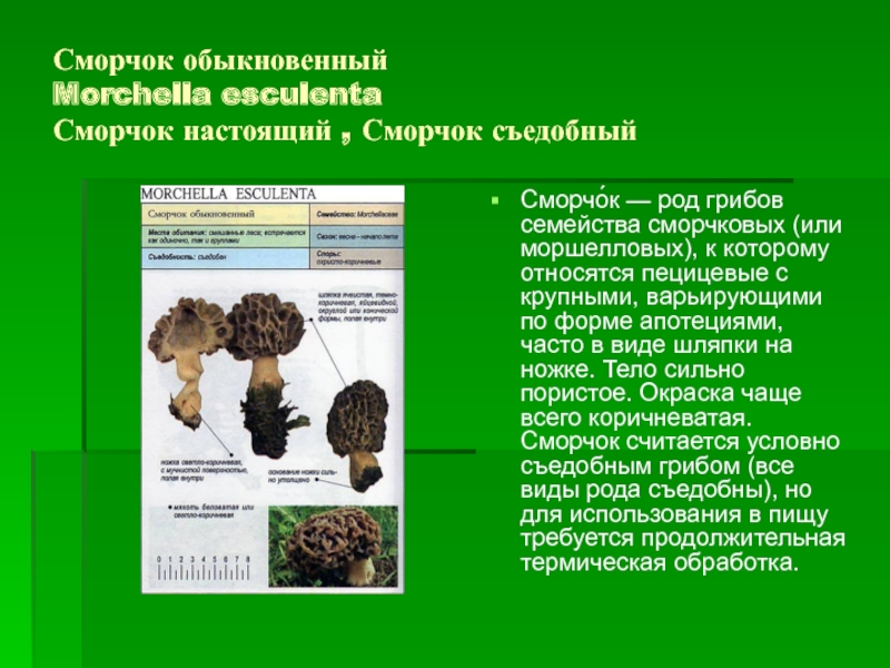 Слайд 2Сморчок обыкновенный Morchella esculenta Сморчок настоящий , Сморчок съедобный