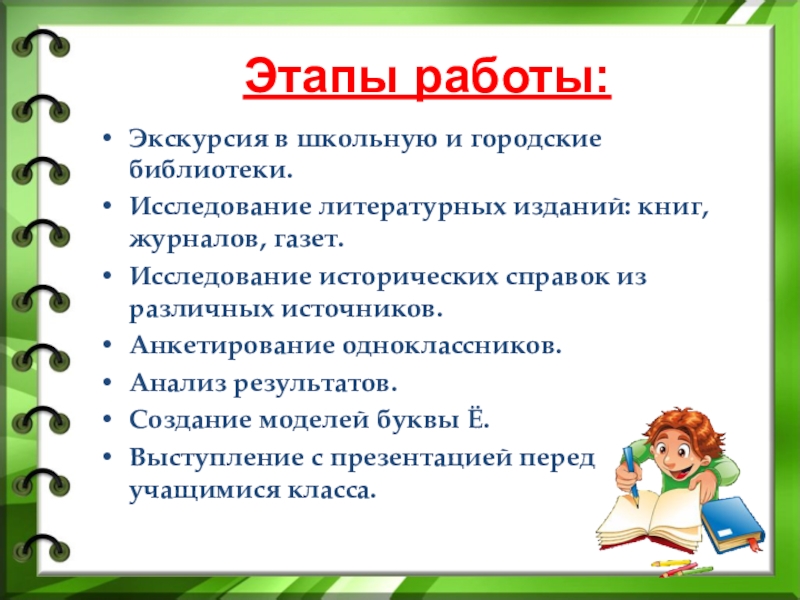 секреты буквы Ё, а мне понравилось делать эти модели, узнавать новое и рассказывать о своих находках ребятам. Я надеюсь, что они тоже полюбили букву Ё и всегда будут ставить над ней точки.