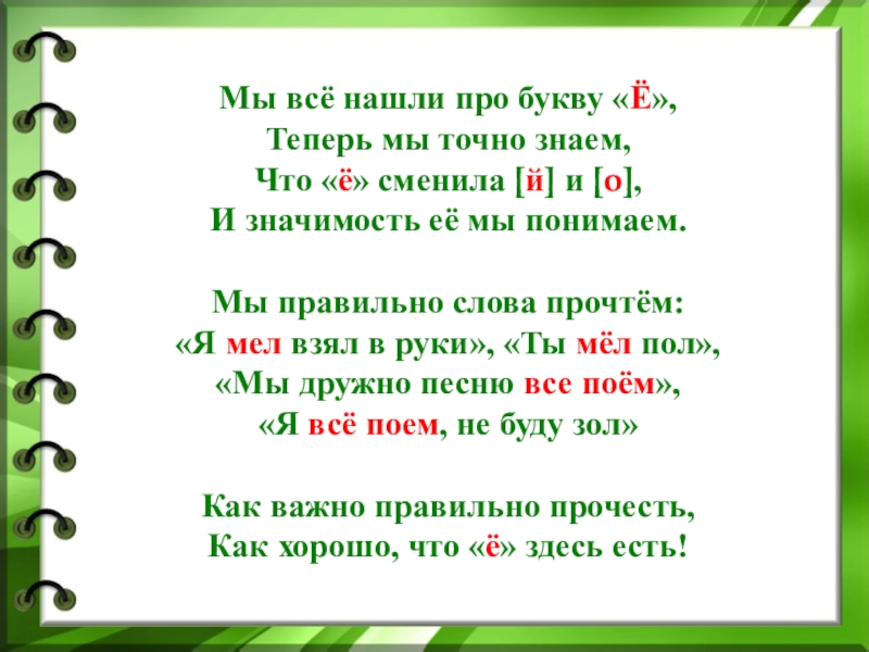 Рассказать ребятам о секретах буквы Ё на литературном чтении.
