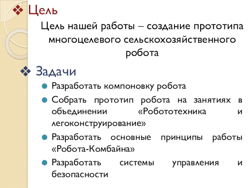 Цель нашей работы – создание прототипа многоцелевого сельскохозяйственного робота