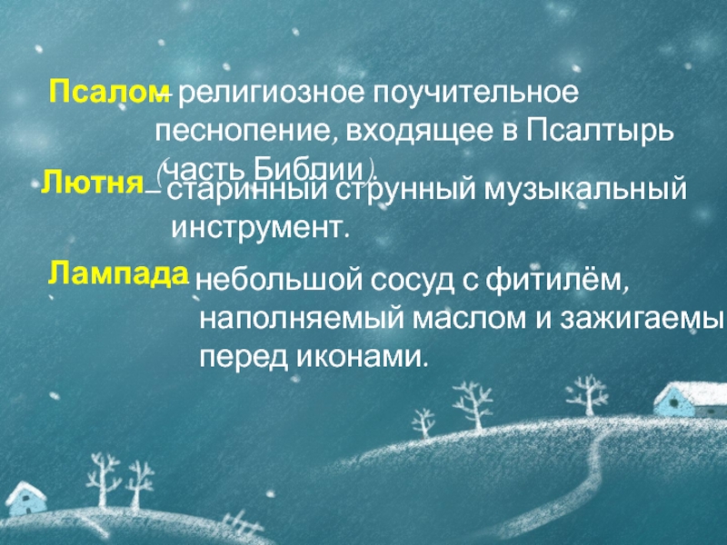 – религиозное поучительное песнопение, входящее в Псалтырь (часть Библии).