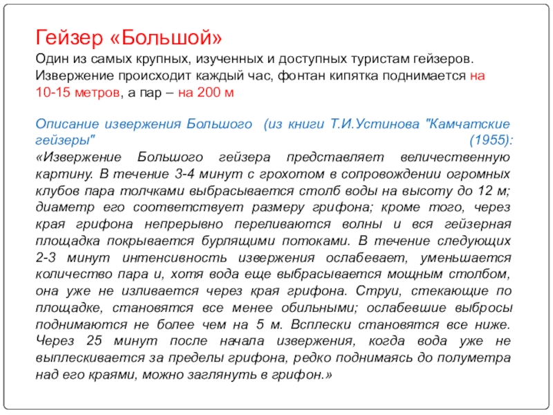 Описание извержения Большого (из книги Т.И.Устинова "Камчатские гейзеры" (1955):