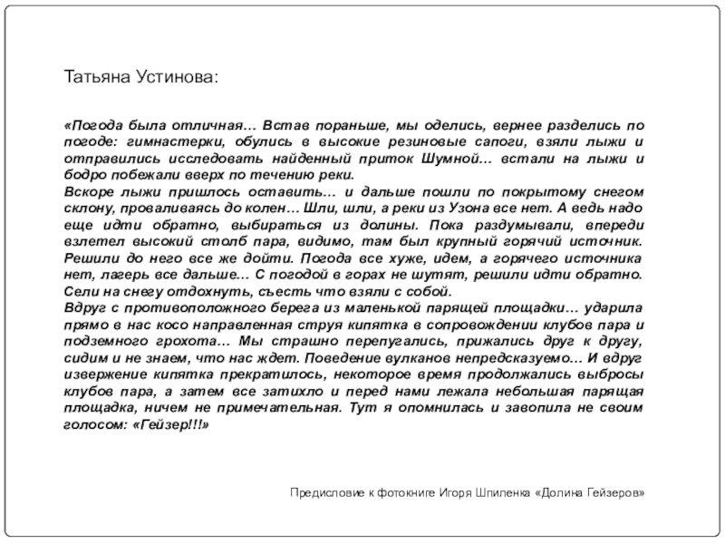 Предисловие к фотокниге Игоря Шпиленка «Долина Гейзеров»