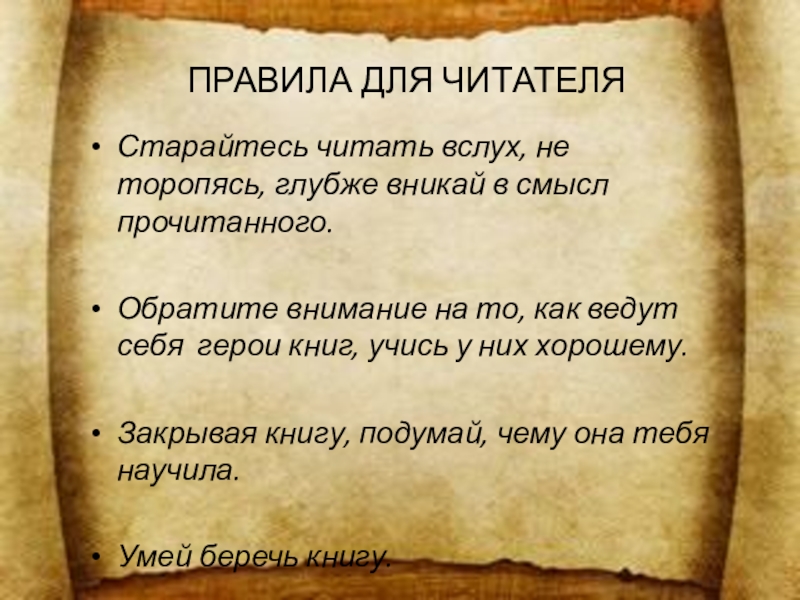 Слайд 18ПРАВИЛА ДЛЯ ЧИТАТЕЛЯ
