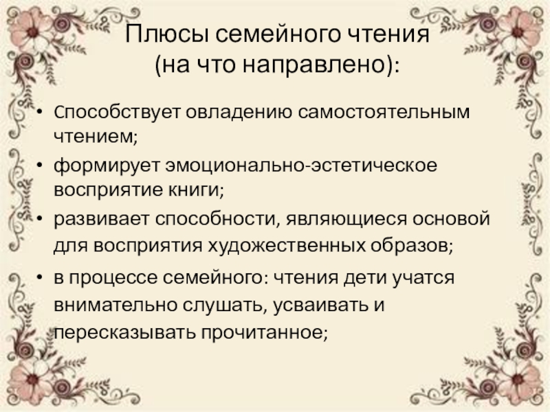 в процессе семейного: чтения дети учатся внимательно слушать, усваивать и пересказывать прочитанное;