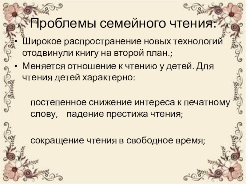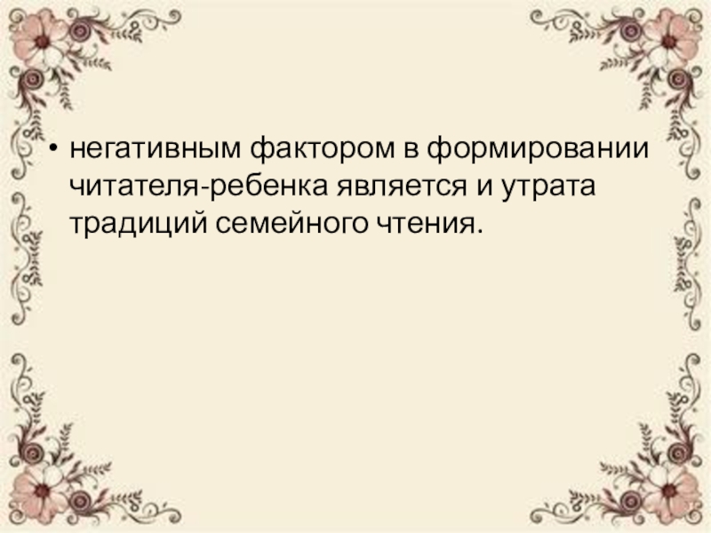 негативным фактором в формировании читателя-ребенка является и утрата традиций семейного чтения.