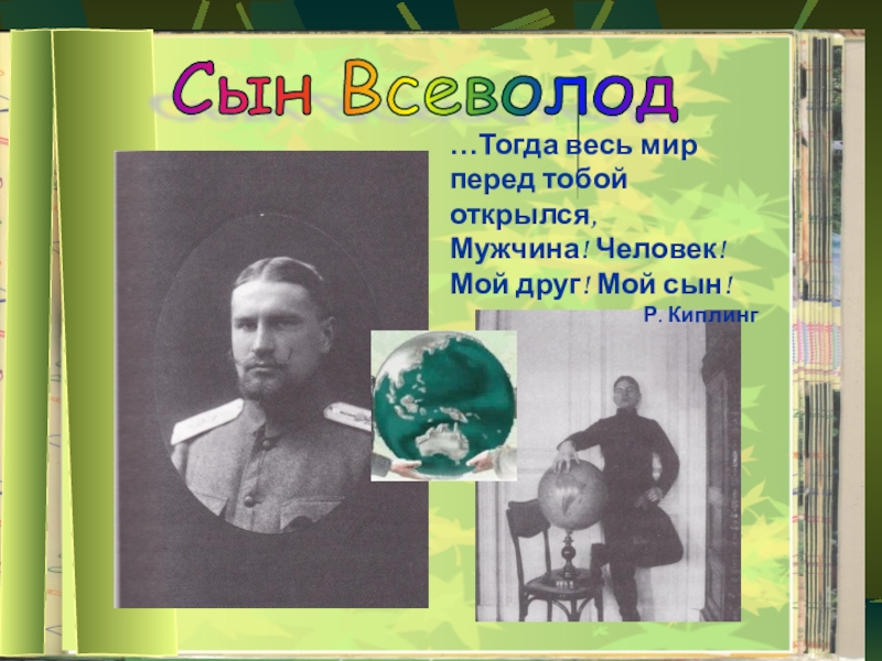 Сын Всеволод …Тогда весь мирперед тобой открылся,Мужчина! Человек! Мой друг! Мой сын!