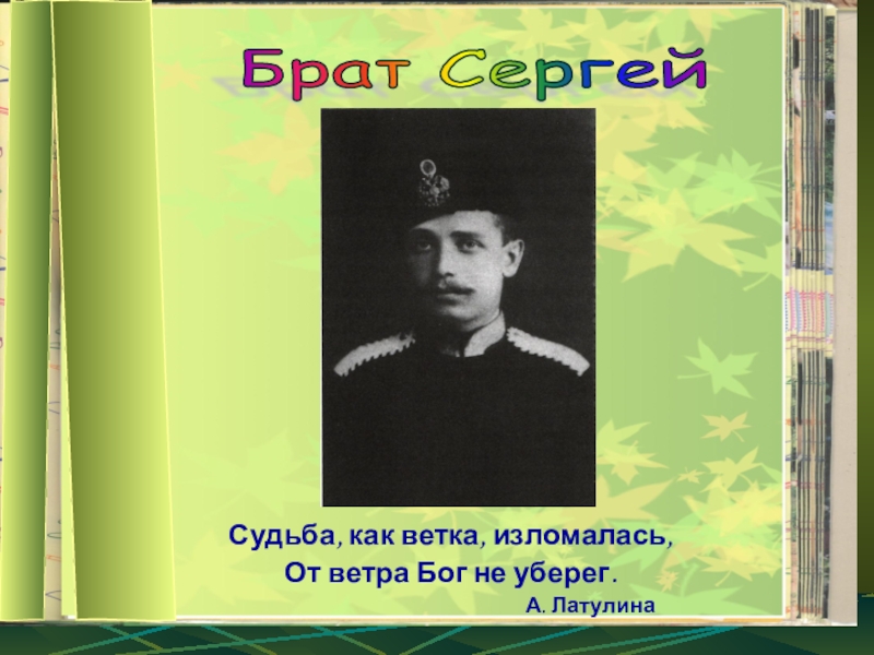 Брат Сергей Судьба, как ветка, изломалась,От ветра Бог не уберег.