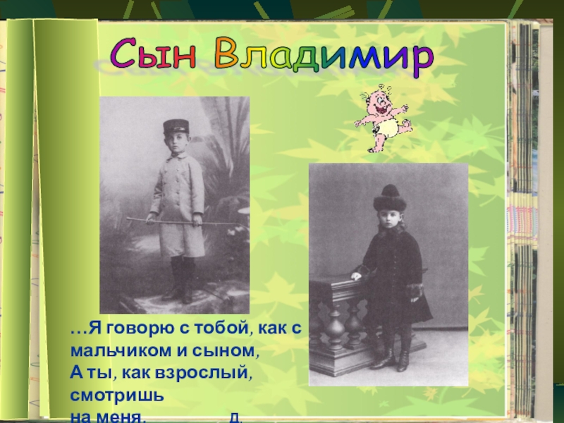Сын Владимир …Я говорю с тобой, как с мальчиком и сыном,А ты, как взрослый, смотришь на меня.