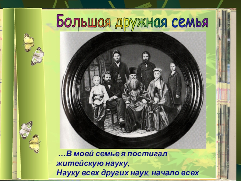 Большая дружная семья …В моей семье я постигал житейскую науку,Науку всех других наук, начало всех начал.