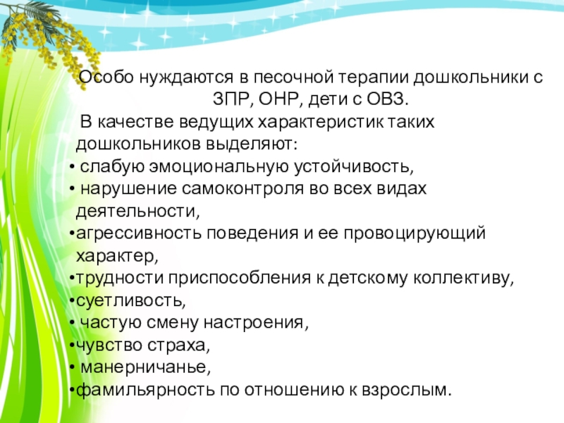 Особо нуждаются в песочной терапии дошкольники с ЗПР, ОНР, дети с