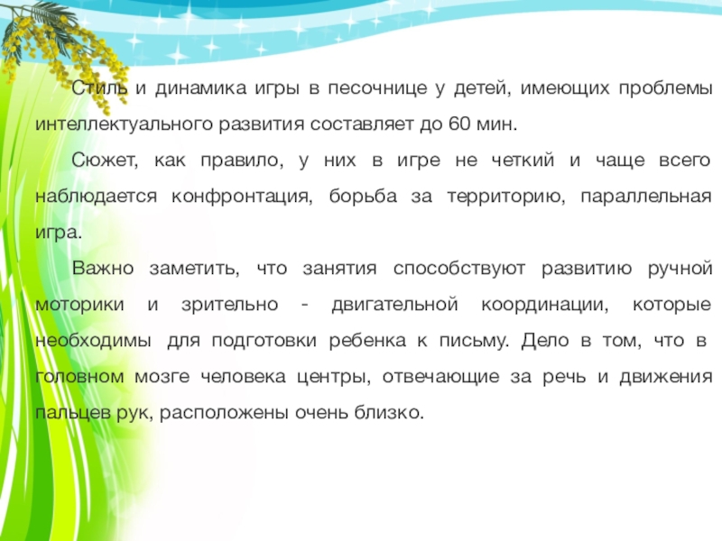 Стиль и динамика игры в песочнице у детей, имеющих проблемы интеллектуального