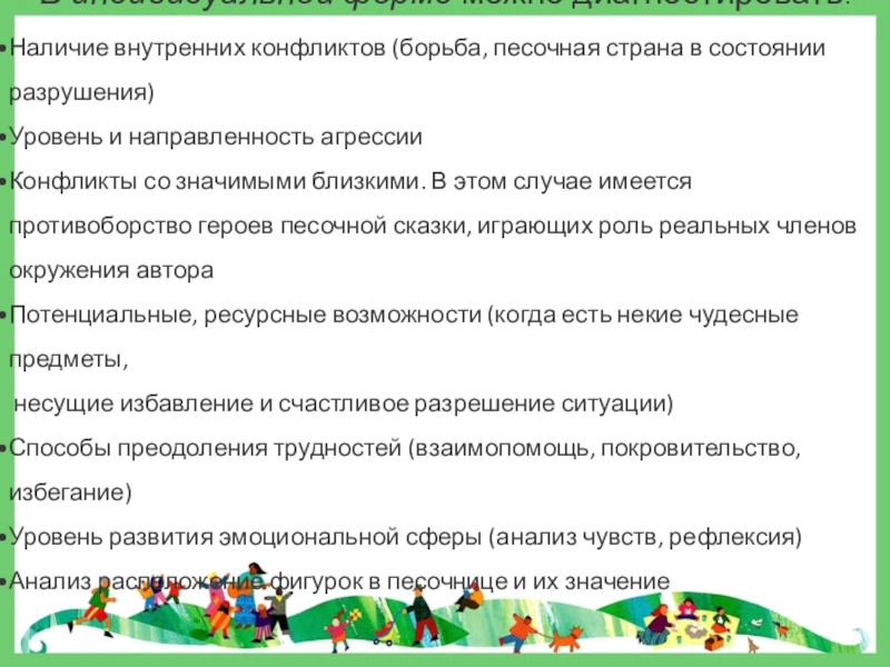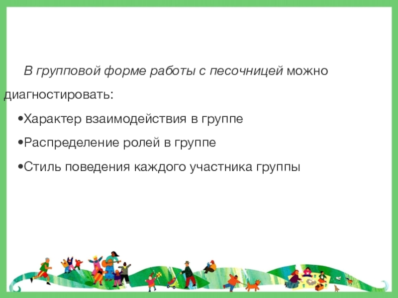 Слайд 11 В групповой форме работы с песочницей можно диагностировать: