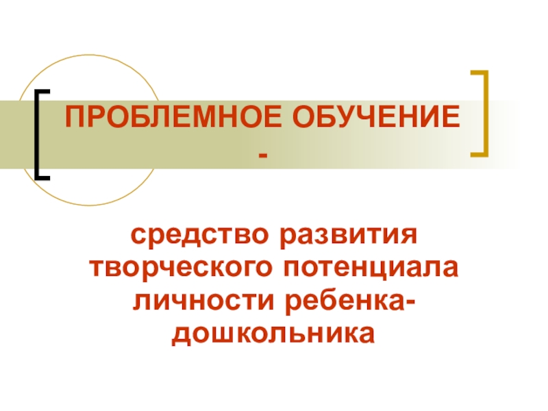 ПРОБЛЕМНОЕ ОБУЧЕНИЕ -средство развития творческого потенциала личности ребенка-дошкольника
