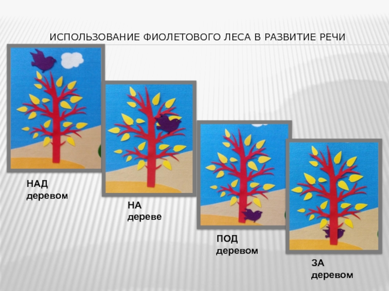 Использование фиолетового леса в развитие речиНАД деревомНА деревеПОД деревомЗА деревом
